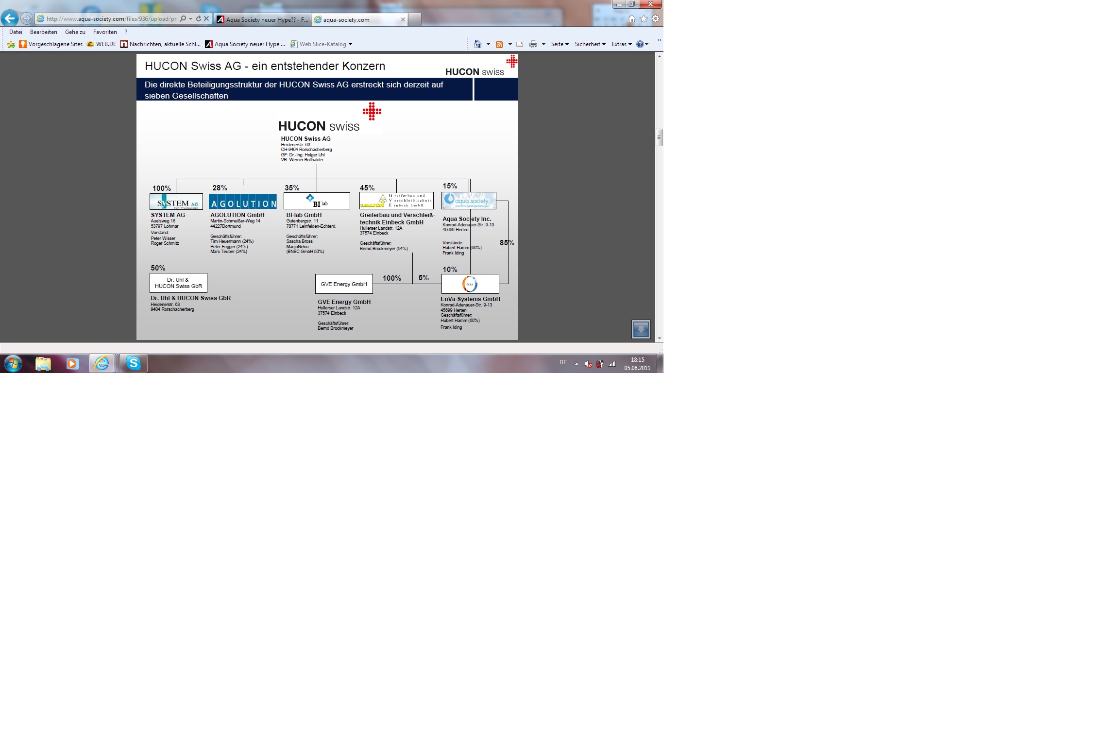 Schlechte Aussichten für Aqua/ENVA, seine Green Power Container über tiv verkaufen zu können.Die Anwaltskanzlei Dr. Schulte und Partner warnt vor Anlagen bei tiv. ("... Dabei stehen den Anwälten der Kanzlei Dr. Schulte und Partner Informationen zur Verfügung, auf Grund denen zumindest von Investitionen bei der RWI Real Wert Invest GmbH, der TIV Trendinvest GmbH, der Erste Mai GmbH, der Quadrosol AG u.a. abzuraten ist." www.dr-schulte.de/2011-pressemitteilungen/...isier-der-ermittler.html )