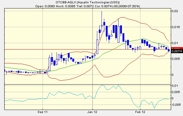 Naja. Das Chart sieht zur Zeit alles Andere als rosig aus. Da ja in der letzten Session der Wert auf unter 0,0075 gesunken ist, stößt im Candlestick Chart das Bollinger Band an die letzte Kerze. Leider ist es das untere Band. Das bedeutet eigentlich dass es erstmal nicht bergauf geht. Aber Fehslignale gibt es schonmal öfter. Denn bei der letzten Berührung mit dem oberen Band ging es auch bergab anstatt bergauf.