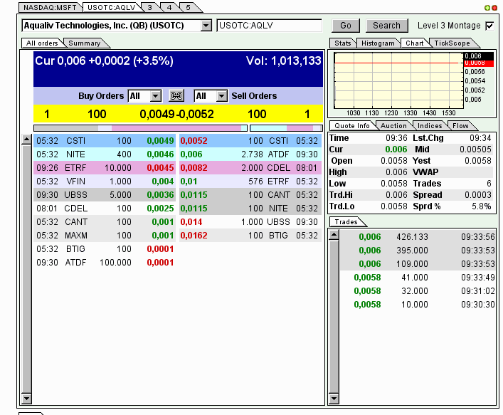 Jan. 22, 2013 6:48 PM, Aqualiv Technologies, Inc. (AQLV) Stock Trading Info: