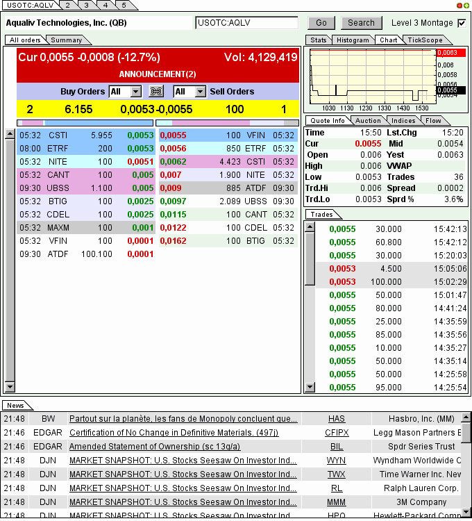 Interested investors and shareholders are invited to be added to the corporate e-mail database for corporate press releases and industry updates by sending an e-mail with "AQLV" in the subject line to: investorrelations@mindspring.com