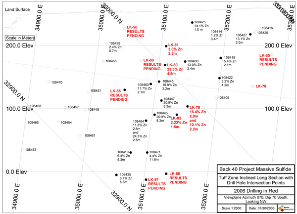 - 41.6 meters of 1.8 g/t gold, 3.45% zinc including 16.1 m of 2.7 g/t gold, 7.70% zinc in massive sulfide in LK-114E