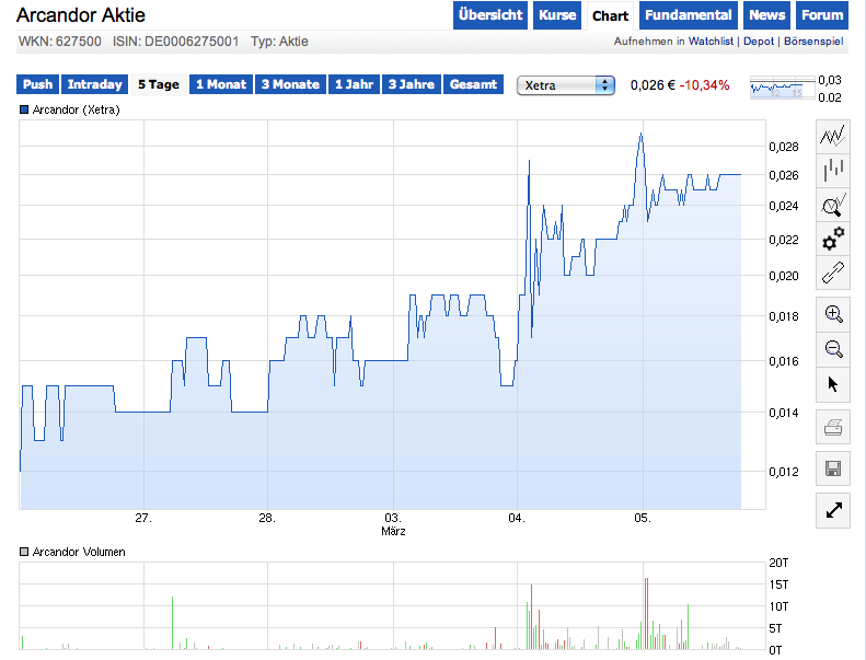 Arcandor AG 0,006 € +33,33% Perf. seit Threadbeginn:   -96,91%