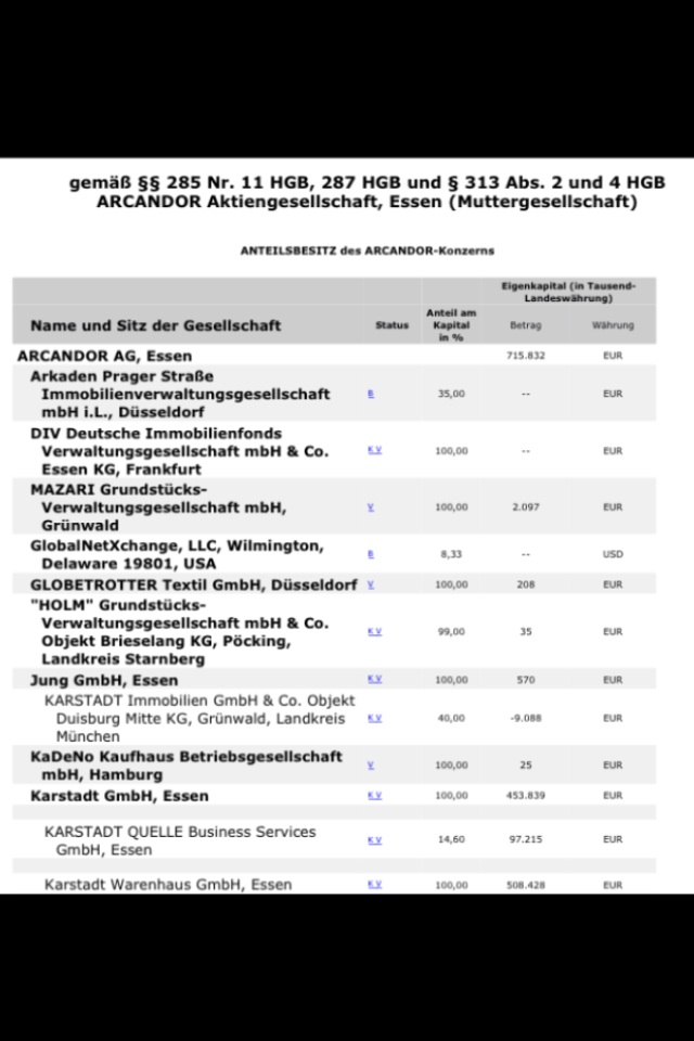 der ARCANDOR Aktiengesellschaft WKN