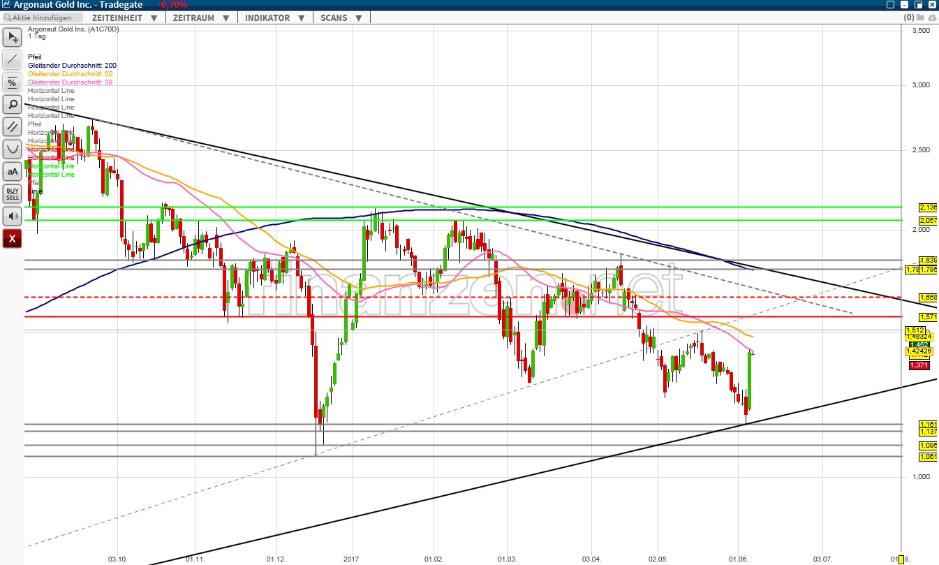 Riesen heranwachsen. Sollte sich Gold Richtung 1500$ bewegen sehen wir hier bald die alten Hochs. Und ohne Schulden und mit Cash von 40 Mio$ in der Rückhand ist Argonaut