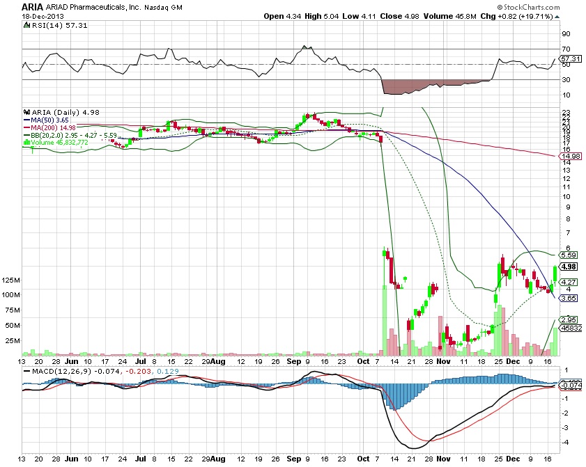 ...das es durchaus hochgehen kann. Die schwarze Linie des MACD ist an der roten Linie abgeprallt. Und es sieht so aus als würde die schwarze Linie die Oberhand behalten und demnach sollte es weiter aufwärts gehen. Der RSI ist noch lange nicht erschöpft. Da geht auch noch was. Das Bollinger Band schließt sich langsam wieder. Das obere Band liegt bei 5,59$. Sollten wir diesen Wert überschreiten ist das ein klares Kaufsignal. Ein deutliches Kaufsignal hatten wir vorgestern übrigens schon. Da hat der Kurs den MA50 von unten nach oben durchstoßen. Auch das war ein klares Kaufsignal. Die Charttechnik sieht gut aus. Jetzt die richtigen News... und es geht up up and away!!!