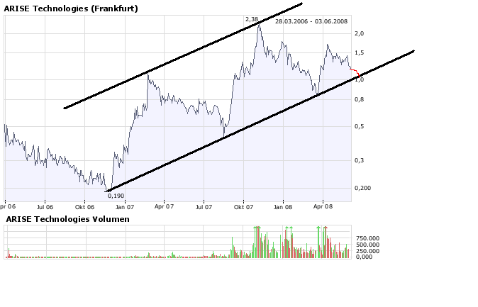 Leute, Arise hat seine Produktion in Bischofswerda auf 35 MW hochgefahren. Alleine die Großaufträge von SOLON und Aleo solar sorgen dafür, dass das Werk aktuell voll ausgelastet ist. Selbst wenn Arise das Volumen im 1.Quartal 2009 auf insgesamt 80 MW steigert, ist die Produktion beinahe ausgelastet vorausgetzt, Arise beschafft sich die dafür notwendigen Wafern (news diesbezüglich werden sicherlich bals eintrudeln). Das gute an der jetzigen Situation mit 35MW ist, dass bereits Umsätze erzielt werden bis Jahresende im zweistelligen Millionenbereich (nächstes Jahr dann dreistellig im Millionenbereich). Ich gehe fest davon aus, dass bis zur Inbetriebnahme der 2.Produktionslinie weitere Aufträge vermeldet werden. Arise würde sein Produktionsvolumen nicht stetig (bekanntlich auf 560MW bis 2012) steigern, wenn es keine Aussichten auf entsprechende Aufträge/Umsätze geben würde. Und spätestens ab 2009 müssten auch die ersten Gewinne eingefahren werden und eine Kursexplosion nach oben ist dann eigentlich vorprogrammiert!