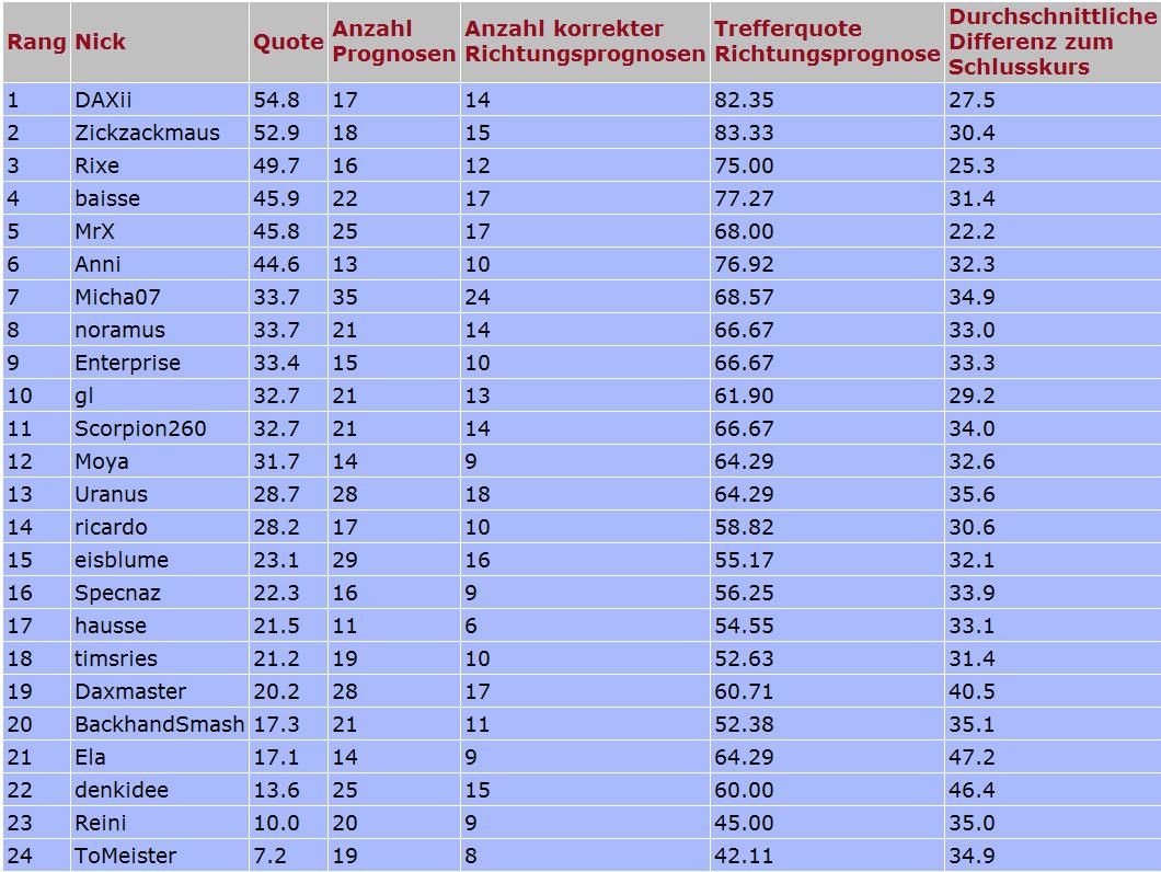 Die Plätze 4 bis 10 werden mit 5 Euro für jede korrekte Richtungsprognose belohnt.
