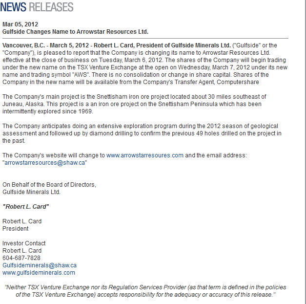 warum wurden die Jungs von CM-E denn nicht am 01.03.2012 von Card darüber informiert, dass er den Namen von GMG am 05.03.2012 in Arrowstar ändern wird? Und die Jungs von CM-E hatten dann doch 8 Tage lang Zeit um zu wissen, dass die GMG jetzt Arrowstar ist. Dennoch wird der Bericht am 13.03.2012 von CM-E unter GMG veröffentlicht.