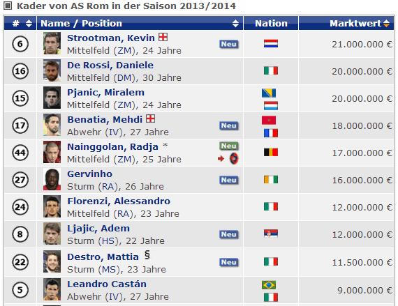 Man muss nur auf die Marktwert schauen um zu sehen das bei Roma in Sommer etwas sehr besonderes stattgefunden hatte.. (sehe Bild)