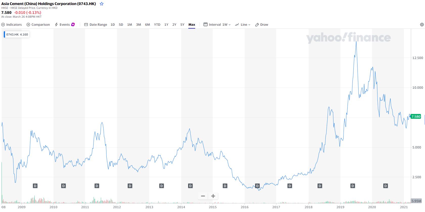 Laut Home -> About us -> Company introduction wurde die Asia Cement (China) Holdings Corporation erst vor 16 Jahren von der vorhin erwähnten taiwanesischen Asia Cement Corporation gegründet; ihre Aktien werden erst seit 2008 an der Börse Hong Kong gehandelt.