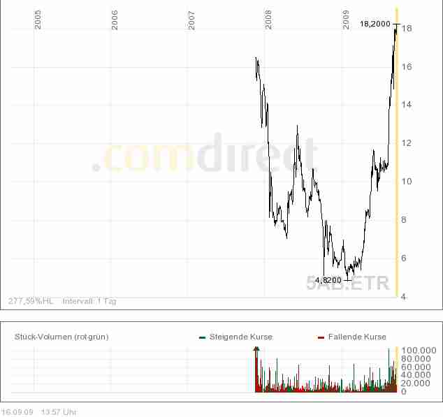 Ich verfolge sehr genau was der Aktionär (und andere) über asian bamboo so schreiben...Vor den letzten Quartalszahlen meinten Sie,der Ausbruch sei rein spekulativ und unbegründet und mann solle erst mal die Zahlen abwarten,vor einem Investment auf einen Rücksetzer warten,....Ok,wer das gemacht hat da hat wohl in die Röhre geschaut...Genauso so sehe ich es jetzt wieder,jetzt verkaufen wo die Aktie nach ner monatelangen Seitwärts Daddelei ausgebrochen ist und längerfristig sicher noch einiges mehr hier drin ist?Ne,Danke....