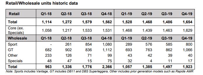 Wenn man die Verkäufe betrachtet fällt auf, dass (sowohl in 2018 als auch 2019) die Verkäufe von Q1 nach Q4 ansteigend sind. Die Verkäufe sind auch nicht kumuliert dargestellt, so das am Ende vom Jahr tatsächlich mehr verkauft wurde als zu Beginn des Jahres. Wäre doch gut wenn das dieses Jahr genauso ablaufen würde und diesmal noch der DBX dazukommt, der die Zahlen hoffentlich nach oben treibt - Gut Ding will aber Weile haben... :)