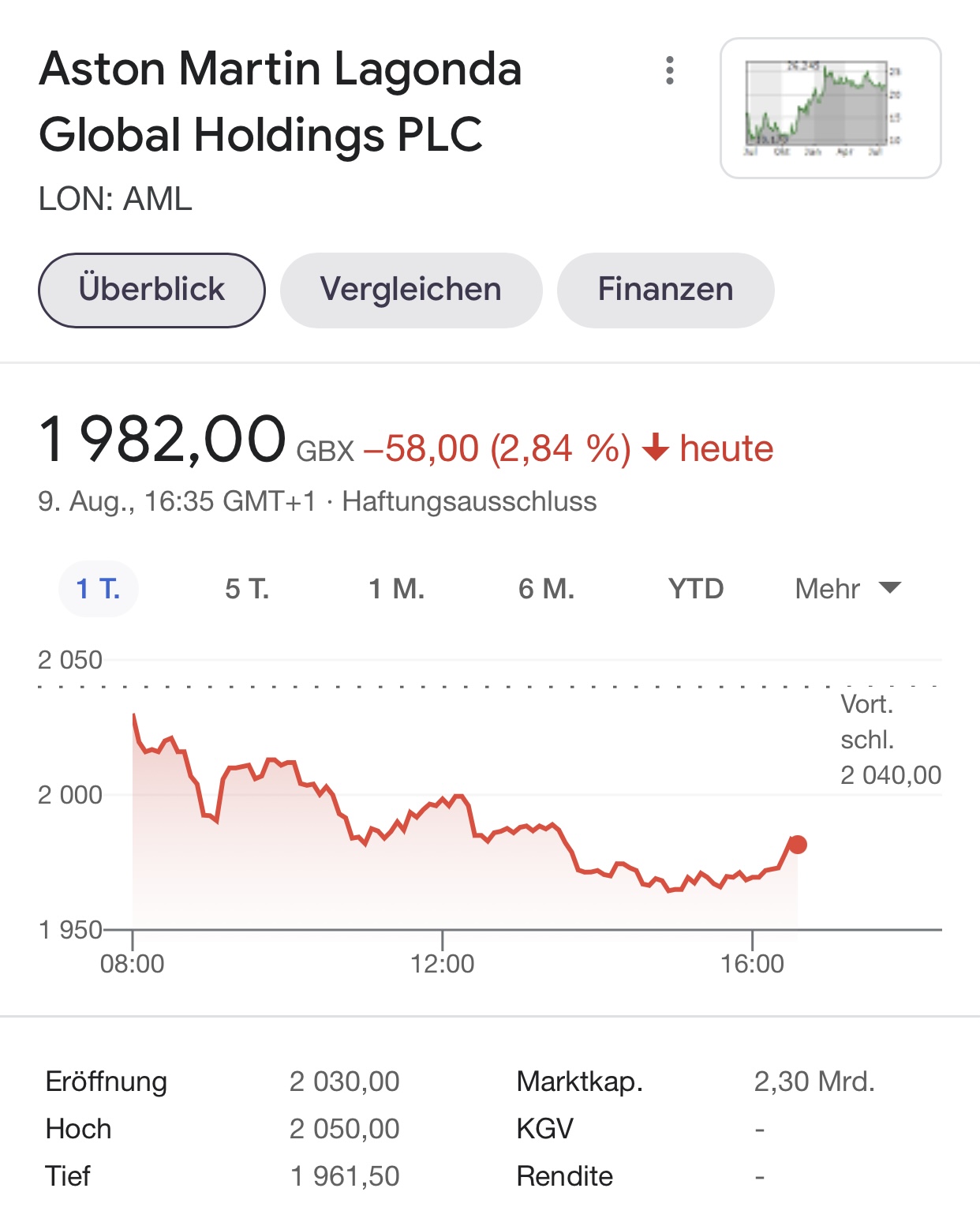 Zumal ein Börsenkurs auch für die Groß-Investoren von Bedeutung wäre, um die Entwicklung zu zeigen oder irgendwelche Vergleiche mit z.B. Ferari aufstellen zu können.