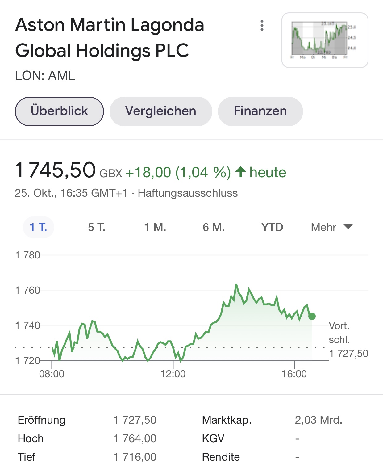 Die Nachfrage nach unseren Produkten, die neue Produktpipeline und die Qualität des von uns eingesetzten Teams geben mir großes Vertrauen in unseren anhaltenden Erfolg, während wir unsere mittelfristigen Ziele von 10.000 Einheiten und 2 Mrd. GBP Umsatz erreichen und 500 Millionen Pfund bereinigtes EBITDA, während wir Aston Martin zu einer der größten Luxusautomarken der Welt machen.“