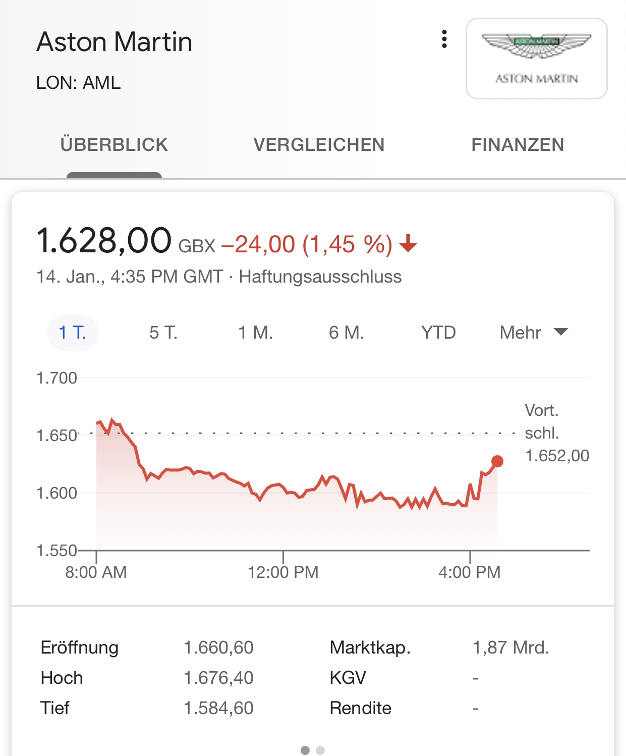 Recent Share Trades for Aston Martin Lagonda (AML)