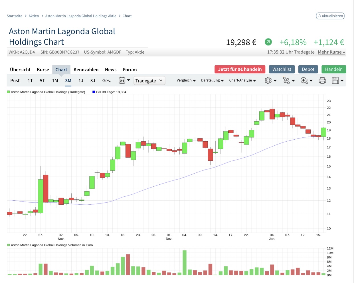 Sieht im Moment so aus, dass die Bullen wieder das Ruder übernommen haben. Noch mehr gespannt bin ich auf den Wiederstand bei knapp über 20 Pfund. Sollte diese Marke durchbrochen werden , könnte der Fahrstuhl mächtig an Fahrt aufnehmen