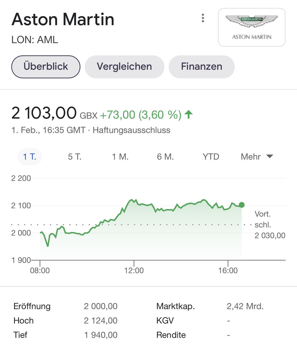 | 9 | 9.484 | Aston Martin. Very british. Invest in eine Legende | DigitalOne | Highländer49 | 01.07.22 17:11 | |