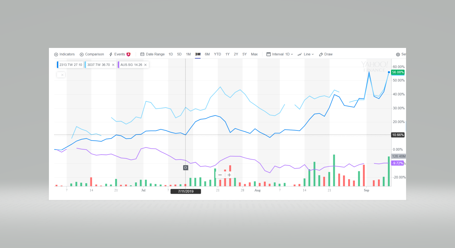 Ich denke schon, dass die zuletzt stark gestiegenen Aktienkurse von Unimicron und Compeq mit der besseren Geschäftslage zu tun haben.