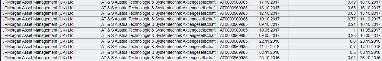 | JPMORGAN ASSET MANAGEMENT (UK) LIMITED | AT & S Austria Technologie & Systemtechnik Aktiengesellschaft | AT0000969985 | 2023-09-08 | 1.1 | 2023-09-12 | |