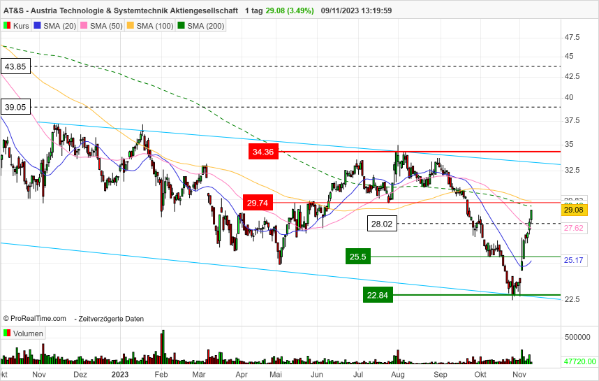 AT+S wurde halt (durch die vermehrten Short Aktivitäten) VOR den Zahlen deutlich stärker runtergepeitscht als andere Unternehmen. Der Kursanstieg von zwischenzeitlich 22,5€ auf 29€ (+29%) ist natürlich erfreulich aber mehr auch nicht, besonders wenn man sich vor Augen führt, von wo man langfristig aber auch kurzfristig, (Anfang August mit schlechten Zahlen/schlechten Ausblick noch bei 34€) hergekommen ist.