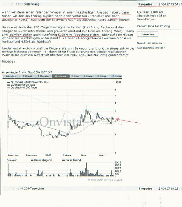 Am 21.04.07 und am 26.04.07 schreibt er 5,5-5,6 Euro sind in einem Tageshandel möglich! Nach seiner Aussage hat er (in Rahmen seiner möglichkeiten) sogar groß aufgestockt!