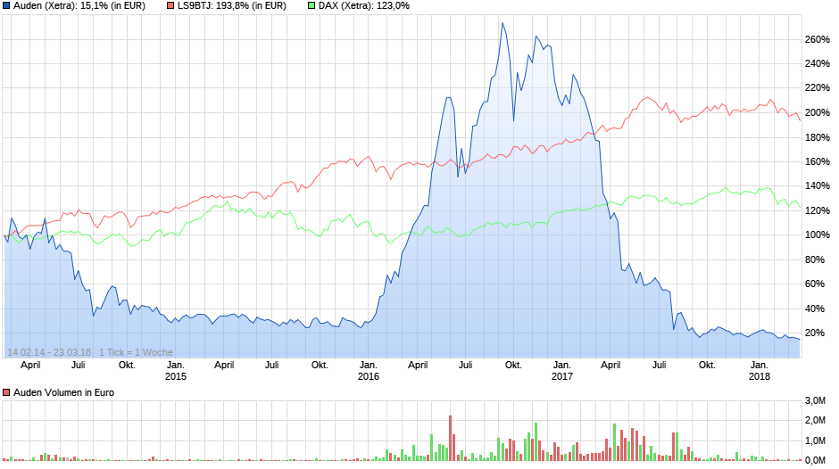 Berlin, 28. März 2018- Vorstand und Aufsichtsrat der Auden AG haben den Beschluss gefasst, die Abschlussprüfung des Jahresabschlusses für das Geschäftsjahr 2016 abzubrechen. Der bisherige Verlauf und die Kosten der Prüfung stehen außer Verhältnis zu dem zu erwartenden Prüfungsergebnis und seiner Aussagekraft. Die Auden AG unterliegt nicht der gesetzlichen Prüfungspflicht. Der Abschlussprüfer hätte ohnehin nur ein eingeschränktes Testat erteilt. Eingeschränkt werden sollte das Testat um die Punkte "Kapitalerhöhung Dezember 2016" sowie "Related Parties Transactions". Beim Punkt Kapitalerhöhung sollte das Testat insofern eingeschränkt werden, dass die Werthaltigkeit dieses Aktivpostens nicht hinreichend nachgewiesen werden konnte. Zudem schloss der Abschlussprüfer nicht aus, dass neben den vorgelegten Transaktionen weitere Transaktionen mit verbundenen Unternehmen und nahestehenden Personen durchgeführt wurden. Ausschlaggebend für die Entscheidung, die Abschlussprüfung ergebnislos zu beenden sind unterschiedliche Auffassungen des beauftragten Abschlussprüfers und der Organe der Gesellschaft hinsichtlich der Annahmen und Nachweise zur Fortführungsprognose, die aufgrund der vorgelegten Liquiditätsplanung als gegeben erachtet wird. Die Auden AG hatte daher die Wahl, dass der Abschlussprüfer das Testat vollständig versagt oder die Prüfung weiter zeitlich aufgeschoben wird, bis die Fortführungsprognose auch vom Abschlussprüfer als hinreichend nachgewiesen beurteilt wird. Der Vorstand erachtet ein weiteres Verschieben der Prüfung des Jahresabschlusses 2016 als nicht sachgerecht an. Unabhängig von der Prüfung durch einen Abschlussprüfer hat der Aufsichtsrat den Jahresabschluss selbst zu prüfen. Diese Arbeiten wurden bereits aufgenommen und sollen zügig abgeschlossen werden. Nach der Prüfung wird der Aufsichtsrat über die Billigung Beschluss fassen. Der untestierte Jahresabschluss 2016 wird am 17. April 2018 veröffentlicht. Die Entwicklung ist insgesamt enttäuschend, aber eine Folge der Tätigkeiten der ehemaligen Organe der Gesellschaft, deren Aufarbeitung und Prüfung durch einen Abschlussprüfer in der hierfür vorgesehenen Zeit unmöglich ist.