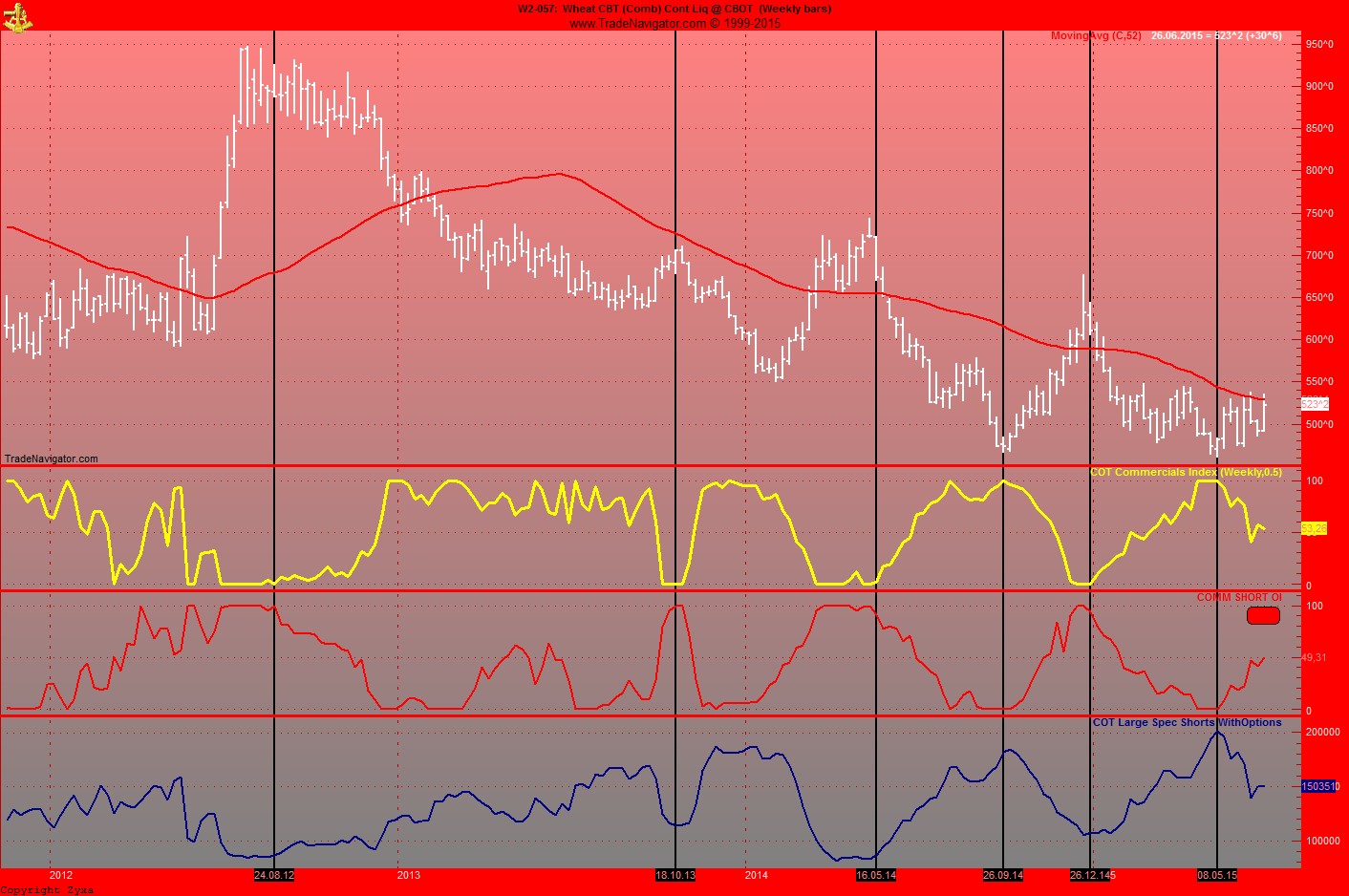 Chart1 zeigt einen Teil vom Cotr., man sieht...alles ok, die Commercials verkaufen in einen steigenden Preis.....noch kein extrem, und selbst wenn der Comm Short OI auf 100 steht ist das noch kein short, erst wenn es die ersten Anzeigen gibt das dieser Wert faellt, dann. liebe Leute ist es an der Zeit ein gemeines Short zu setzen