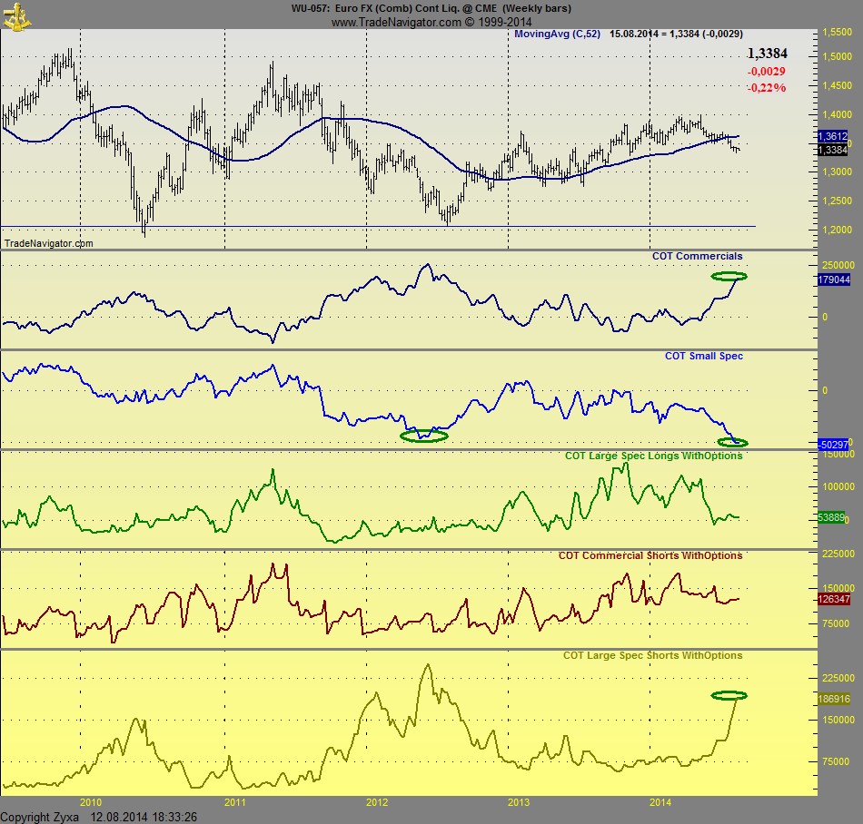 Ich denke, dass im Bereich der COT-Commercials noch Luft für einen letzten Positionsaufbau bis 75-80T ist, dann sollte sich ein Tiefpunkt entwickeln. Gleichzeitig wird