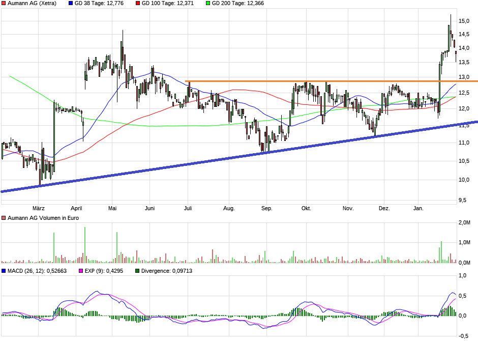 Im Fall von Aumann wird einfach die Substanz nicht beachtet. Man konzentriert sich zu stark auf schwaches Umfeld und Erwartungen. Das ist im allgemeinen auch oft sinnvoll, aber wird eben bei 11,5 € pro Aktie Netcash und rund 16 € Buchwert völlig übertrieben negativ bewertet. Zumal ja nicht gesagt ist, dass der Auftragseingang so niedrig bleibt. Wenn der jetzt auch noch deutlich steigen würde, müsste ich höhere Kursziele als 17-19 € aufrufen.