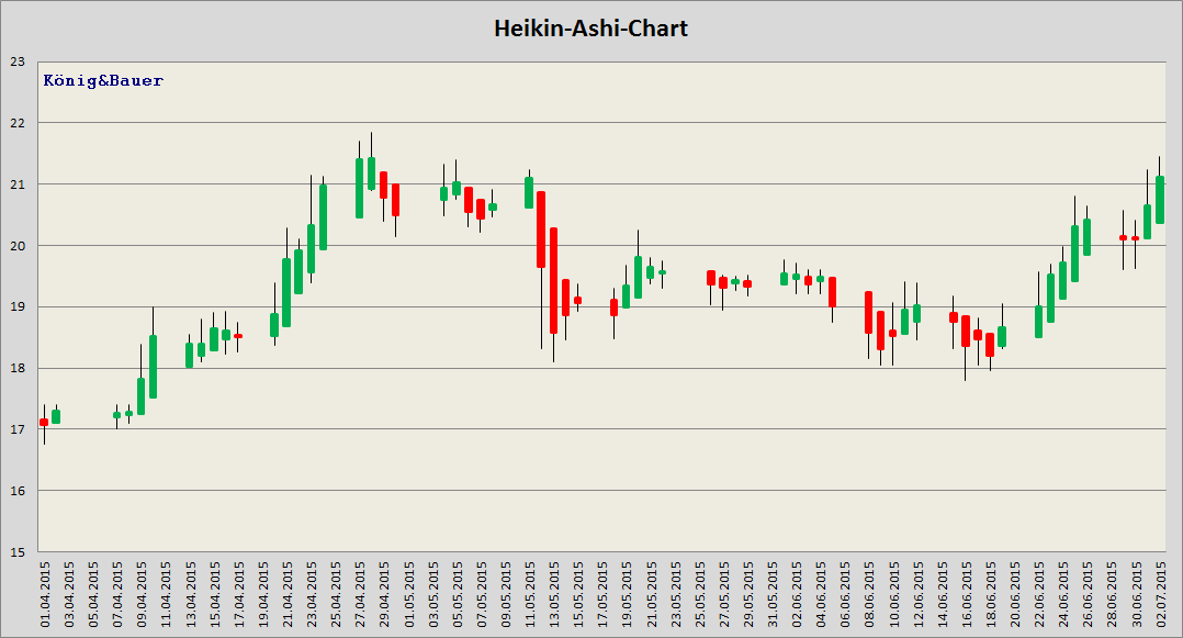 die SDAX-Aufnahme hat hier wohl gut getan. Hier der aktuelle Heikin-Ashi-Chart, die Kerzen entstehen durch Glättung.