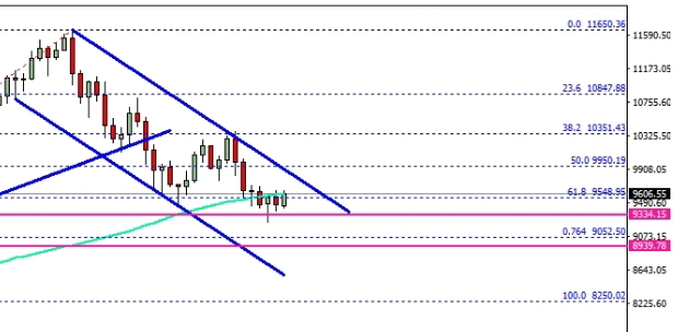 The pair traded towards the $9,400 support and declined below the 100 simple moving average (4-hours). More importantly, there was a break below the 50% Fib retracement level of the last wave from the $8,250 low to $11,650 high. It has opened the doors for more losses below $10,000. On the downside, the $9,350 support is holding losses and is preventing declines. Should there be a break below $9,350, the price may even decline below the $9,000 level. An intermediate support is near the 76.4% Fib retracement level of the last wave from the $8,250 low to $11,650 high.