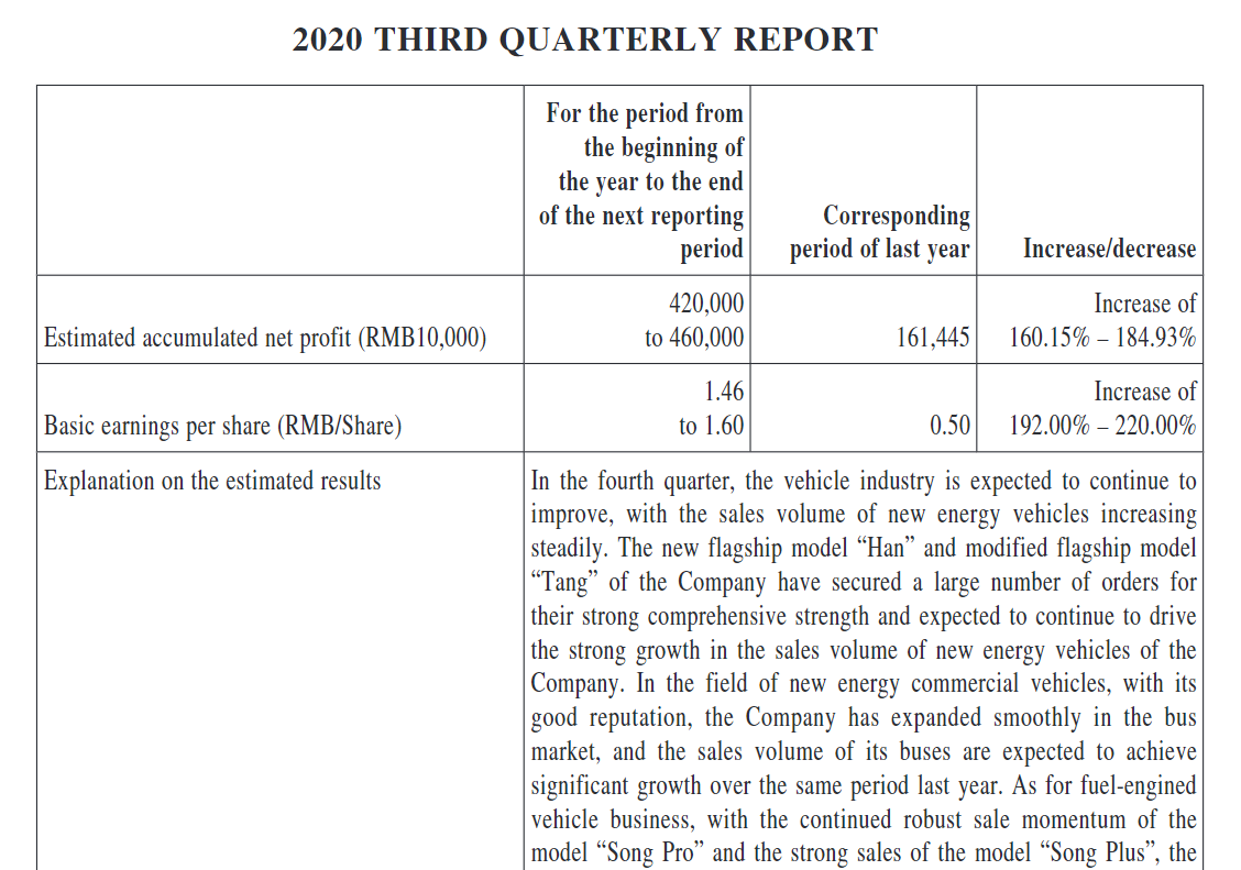 Die chinesische Wirtschaft ist nach der Coronavirus-Krise im Frühjahr 2020 wieder im Aufschwung, wovon auch BYD profitiert. Dies belegen die letzten Absatzzahlen aus dem Monat September. In diesem verkaufte BYD mit 42.183 ganze 14,7 % mehr Autos als noch im Monat zuvor. Die Konsumenten kehren also wieder zurück. Selbst gegenüber dem Vorjahresquartal ergibt sich bereits wieder ein Plus von 3,56 %. Seit Jahresanfang liegt BYD mit seinem Gesamtabsatz allerdings noch 19,9 % unter dem Vorjahr.