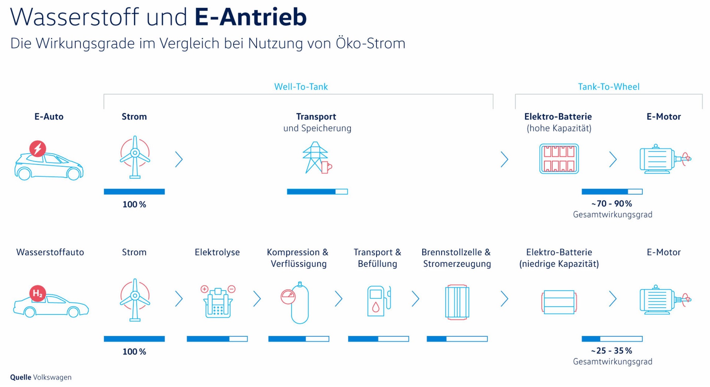 Wenn du dir die Grafik genauer angeschaut hättest, hätte dir auffallen sollen, das auch für die Zeile mit dem Wasserstoffauto die Quelle 100% regenerative Energie ist. Es würde also etwa 3 mal soviel Reserveenergie benötigt werden, wie für den reinen batterieelektrischen Antrieb.
