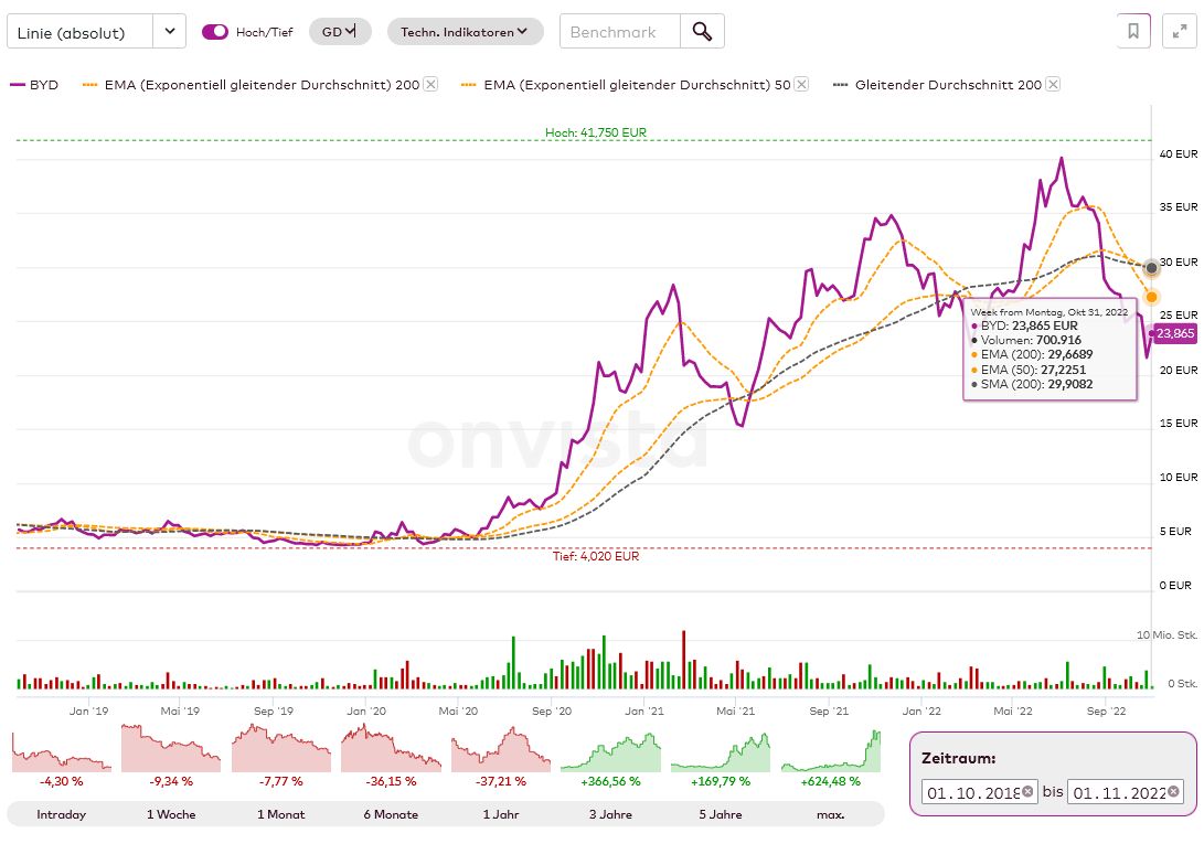 ich glaube bei byd stehen viele in den startlöchern, an der seite, warten, um auf den zug aufzuspringen, wenn die aktie dreht, kann es schnell gehen. auch das kgv wird langsam besser, wenn die margen und verkäufe steigen. elektro hat den peak noch lange nicht erreicht. also buffet, sieh zu, mach fertig.