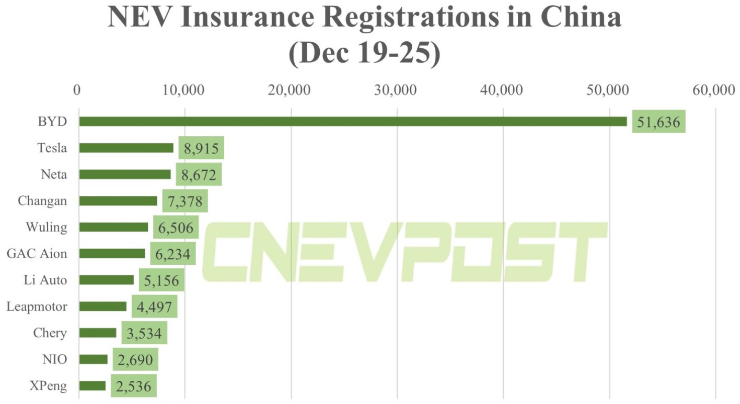 4th week of Dec: BYD 51,636, Tesla 8,915, NIO 2,690