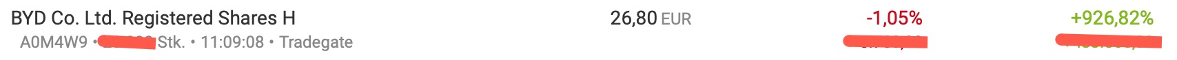 Was den Kursverlauf von BYD betrifft, bin ich nach wie vor sehr zufrieden und zuversichtlich. Ähnlich wie Politik betrachte ich Investitionen langfristig. Da kratzt es mich nur wenig, wenn BYD wieder unter die 1000% Gewinn in meinem Depot abgetaucht ist.