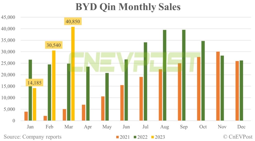 BYD Mar sales breakdown: Qin 40,850, Song 40,510