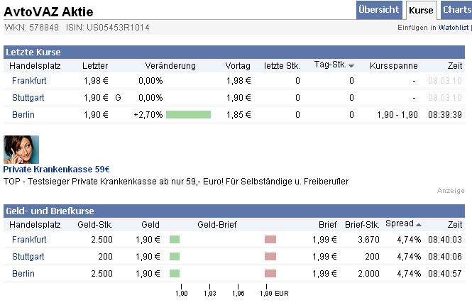 Nach Angaben der European Business Association sind die Verkäufe der von AvtoVAZ hergestellten Pkws und Kleintransporter im ersten Halbjahr 2009 um 44 Prozent auf 179 900 Wagen geschrumpft.