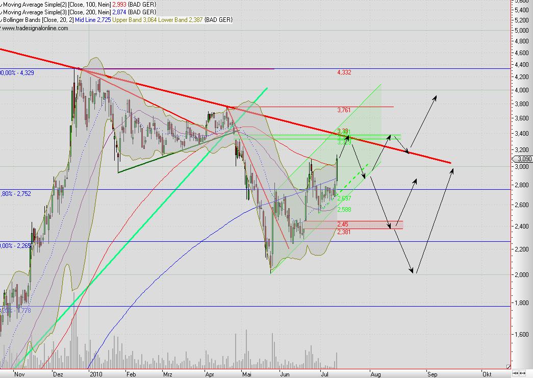 Positiv zu werten ist, dass die Aktie gestern bei 3,26 Euro und damit in der Nähe des Tageshochs bei 3,30 Euro den Handel beendete „Vieles spricht dafür, dass der Höhenflug weitergehen wird“, heißt es am Parkett. Auch charttechnisch betrachtet dürfte sich die Aufwärtsbewegung fortsetzen. Der SDAX-Titel hat das Zwischenhoch vom Juni bei 3,10 Euro mit Leichtigkeit überwunden und gestern bei 3,30 Euro ein neues 3-Monatshoch erreicht. Größere Hürden stehen nun erst wieder im Bereich um 3,80 Euro im Weg, beim Sprung darüber würde gar das Jahreshoch bei über 4,30 Euro wieder in greifbare Nähe rücken.
