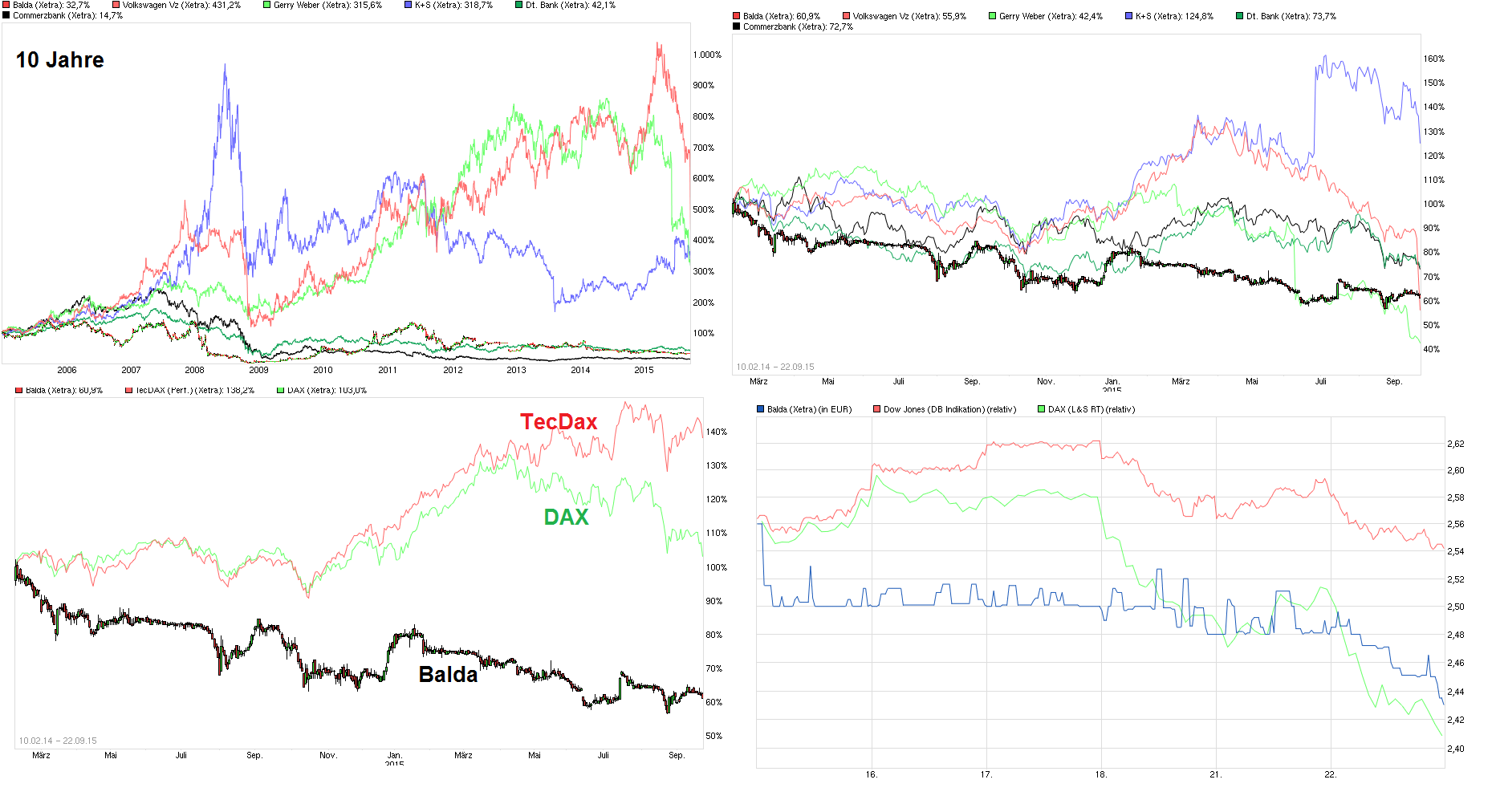 P.Holland 1927 : #10516 Balda hält sich sehr beachtlich! Schaut Euch mal die Kursentwicklung der letzten Tage und Wochen von Gerry Weber, K+S, BMW, COBA, Deutsche Bank, Daimler, Salzgitter AG und vor allem der Volkswagen AG an. Na, da bin ich aktuell doch sehr froh, Aktionär der Balda AG zu sein. Hier in diesem Forum sind zuweilen auch "Betrugsvorwürfe" geäußert worden, aber schaut Euch mal die offensichtlichen Realitäten in Wolfsburg an, dagegen ist Balda doch ein Kindergeburtstag, gell
