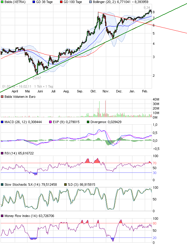8.07-0.03-0.37%Hinter den Kulissen scheint es bei Balda hoch her zu gehen, auch wenn nach außen hin ein freundlicher Umgangston angeschlagen wird. Wie es heißt, habe sich der Aufsichtsrat mit Sienkiewicz darauf verständigt, dass dieser mit sofortiger Wirkung aus dem Vorstand der Balda AG ausscheide. Er stehe aber der amerikanischen Tochter Balda Solutions USA künftig als Berater zur Verfügung. Außerdem dankt der Aufsichtsrat Sienkiewicz für seine bisherige Arbeit. Doch das sofortige Ausscheiden und die Floskel zum "Austrittsgrund" lassen darauf schließen, dass Balda den Chef vor die Tür setzt.