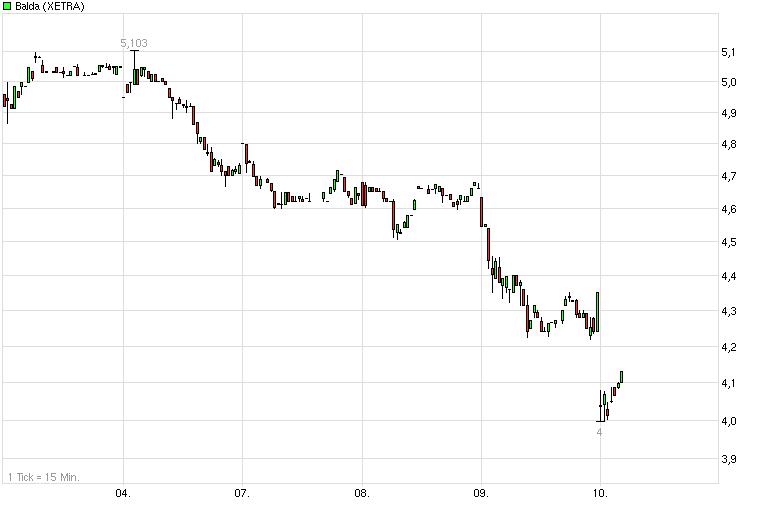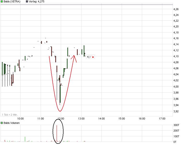 Fakt ist, die Charts der beiden Aktien sehen ähnlich aus, und Balda hat sich monatelang immer sozusagen 1 zu 100 an TPK orientiert. Natürlich weiß ich nicht, ob TPK so tief fällt, aber ist es undenkbar? Und ab und zu reagiert Balda ja intraday auch über. Vielleicht ja am Tag des Tiefs.