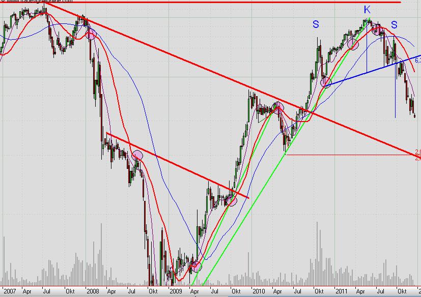 Also fundamental ist TPK nicht mehr teuer und eine etwas längere technische Gegenreaktion inzwischen mehr als überfällig. Sollte es aber in Verlaufe von 2012 zu einer weltweiten starken Konjunktureintrübung kommen, wo entsprechend Touchscreen-Geräte bei den Konsumenten weniger stark abzusetzen wären, dann müßte man die Lage neu beurteilen. Von daher wäre es gut man trennt sich im Falle einer Neubesetzung des AR möglichst schnell von den restlichen TPK Aktien, damit man dem Risiko einer weiteren Konjunktureintrübung im weiteren Verlauf des Jahres 2012 in jedem Fall so aus dem Weg gehen kann. In 6 Wochen sind wir schlauer wie der "Kampf" ausgehen wird. Sicher ist nur, daß bis dahin gewisse Leute ihre Stimmrechtsanteile weiter aufstocken werden. Man hat ja heute z.B. gesehen wie gegen Mittag innerhalb weniger Minuten ca. 400.000 Stk schnell aufgesogen wurden. Das entsprach zuletzt oftmals dem Handelsvolumen eines ganzen Tages.