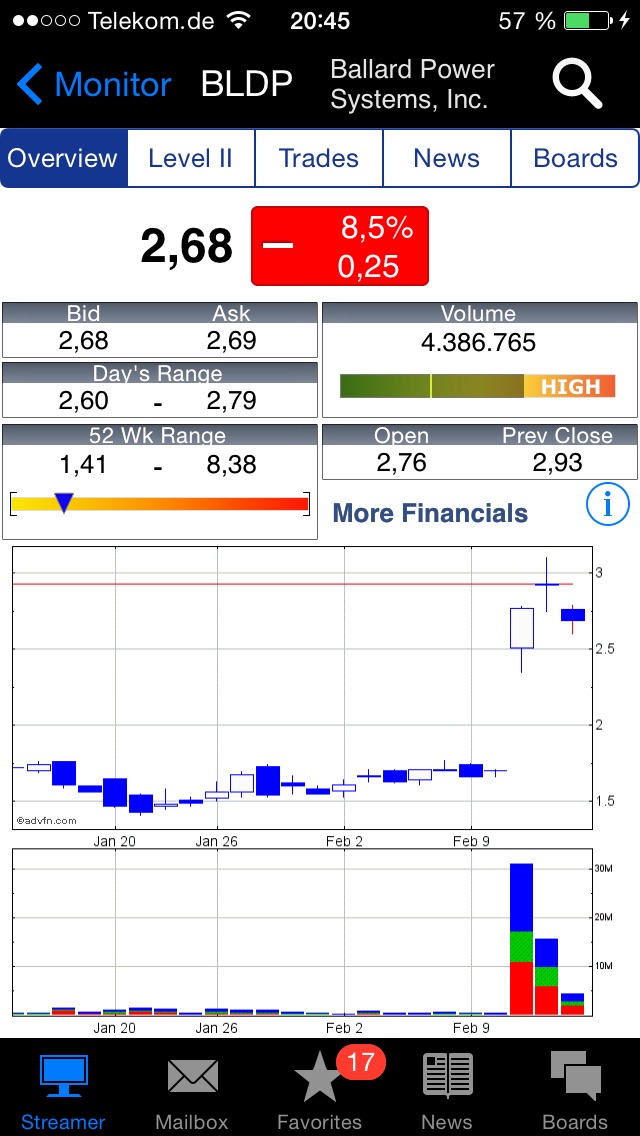 Knapp ein Jahr vor den Hammernews von letzte Woche war die Aktie bei 2,40 €. Ich habe gekauft. Dann ist die Aktie relativ zügig auf 3,20 hoch. Kurz vor meinem Einstieg warens sogar mal 5 €. Dann gabs ne Bereinigung auf und ich hab bei 2,90 nachgekauft. Dann kam nach und nach der Absturz auf 1,40. Letzte Woche dann +58 % an einem Tag. Ich dachte mir, ok am 2. und 3. Tag danach gibts vielleicht Gewinnmitnahmen und dann bleibt die Aktie zumindest auf diesem Niveau. Aber es geht schonwieder runter. Die Firma ist besser aufgestellt denn je. Aber wenn ich mir so den Verlauf der Aktie ansehe würde es mich nicht wundern, wenn es nun langsam wieder auf 1,40 oder tiefer gehen würde. Fakten interessieren höchstens nen Tag, dann kann Ballard richtig abgehen. Als die Aktie letzte Woche auf 2,59 ging dachte ich wenn die 1-2 Tage danach keine deutliche Gegenbewegung kommt werden wir zumindest erstmal über 2,40 bleiben. Aber nix is. Ich bin ja froh, dass die Aktie letzte Woche so hoch ist, aber ich seh keine Substanz. Bei Ballard ja, nur bei der Aktie absolut nicht. Das mag sich irgendwann ändern, nur was wäre wenn es vorher nen Börsencrash gibt. Wenn die Ballard-Aktie stabil wäre könnte sie ein Kriesengewinner sein. Wenn aber die Aktie schon jetzt wie ein Spielball wirkt bin ich nicht so optimistisch. Aussteigen werde ich aber dennoch nicht. Ich vertrau Ballard, nur der Aktie noch nicht so ganz.