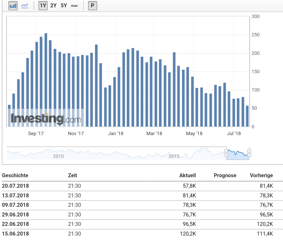 Es gibt auch (noch) keinen Grund für einen Wegbruch nach unten. Die Minen sind in letzten 18 Monaten nur moderat (oder gar nicht) nach oben gezogen, als der Goldpreis sich im Januar 2018 in seinem zweiten Anstieg (nach Juli 2016) wieder bis auf 5 $ dem Verlaufshoch von 1370 $ näherte. Der GDX zeigt, dass die Minenaktien nach dem Hoch im Sommer 2016 durchaus rationell um das 50iger Fibu konsolidierten und sich einpendelten (s. Chart). Die Divergenz zwischen den EM und den Minen ist also im Jahresverlauf gesehen nicht so hoch, wie es die letzten Wochen vermuten liessen.