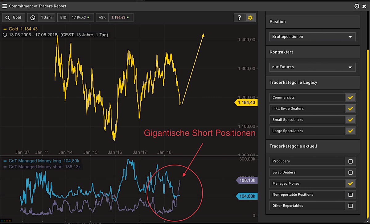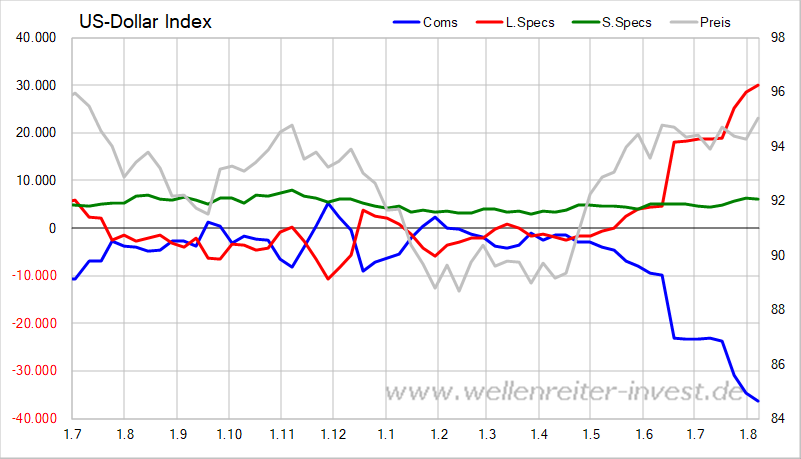 Was sollte den Höhenflug denn stoppen? Eine kleine Gegenbewegung, das wird es dann gewesen sein. Die anderen Währungen sind halt zu schwach und durch die Umkehrung des Carry-Trades fließen die Dollars eben nach USA. Die einzige Währung, die dagegen halten sollte, wäre der Euro. Aber die Eurozone, mit fast Nullzinsen und einer Menge maroder Banken, ist nun auch kein Gegner. Einige Staaten werden jetzt ihr Gold in USD umtauschen, um ihre Schulden in USD zurückzahlen zu können. Irgendwann nimmt die Inflation Fahrt auf und geht vielleicht sogar in eine Deflation über. Das ist dann der Zeitpunkt für Gold. Vielleicht starten die Amis ein neues QI, wenn die Märkte langsam bröckeln und eine größere Anzahl von Firmen die höheren Zinsen nicht mehr zahlen können. Irgendwann können die USA auch ihre Staatsschulden nicht mehr begleichen, je höher der Zins steigt. Ich glaube, man sollte die Zinskurve im Auge behalten, das ist ziemlich zuverlässig. Irgendwann steigen die kurzfristigen Zinsen und übertreffen die Langfristzinsen, oder ziehen gleich. Das wäre ein gutes Signal. Auf irgendwelche Charts verlasse ich mich nicht. Wenn es Ernst wird, kann es sehr schnell gehen, wenn die Shorties eindecken müssen.