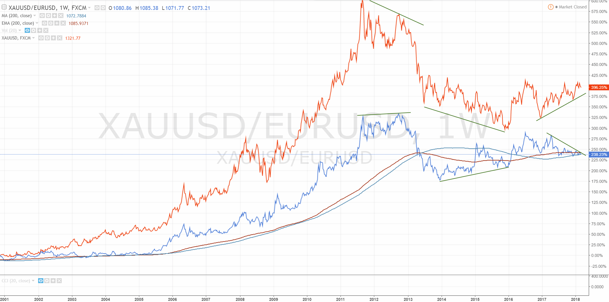 Hast jetzt ja lange nichts mehr darüber geschrieben jetzt aber wieder die Vermutung, dass der Euro/Goldpreis wichtig ist. Ich stimme zu für uns, die den Euro in der Tasche haben ist der Preis in Euro wichtig, also für 500 Mio von 7 Mrd Menschen.