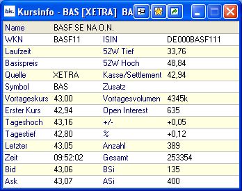 BASF ist das führende Chemie-Unternehmen der Welt: The Chemical Company. Das Portfolio reicht von Chemikalien, Kunststoffen und Veredlungsprodukten bis hin zu Pflanzenschutzmitteln, Feinchemikalien sowie Öl und Gas. Als zuverlässiger Partner hilft die BASF ihren Kunden in nahezu allen Branchen, erfolgreicher zu sein. Mit hochwertigen Produkten und intelligenten Lösungen trägt die BASF dazu bei, Antworten auf globale Herausforderungen wie Klimaschutz, Energieeffizienz, Ernährung und Mobilität zu finden. Die BASF erzielte 2009 einen Umsatz von mehr als 50 Milliarden € und beschäftigte am Jahresende rund 105.000 Mitarbeiterinnen und Mitarbeiter. Die BASF ist börsennotiert in Frankfurt (BAS), London (BFA) und Zürich (AN). Weitere Informationen zur BASF im Internet unter www.basf.com .