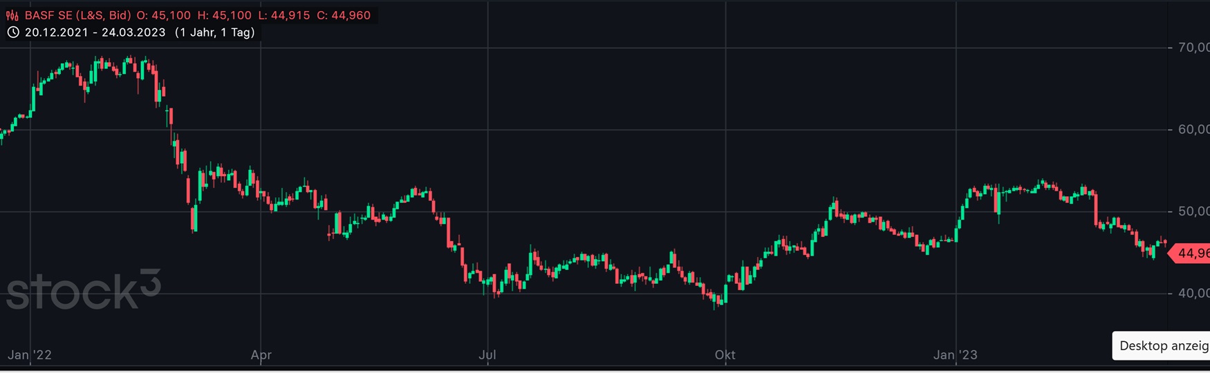 ...jemand auf Falschinformationen reinfällt, trotz der Intraday Kerze ist BASF weiter im bärischen Szenario. Die Unterstützung bei 45,30 € wird jetzt zum Widerstand