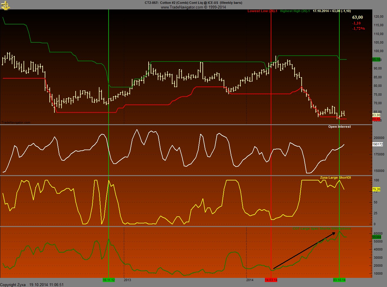 Leider bin ich heute mit meinem Schein ausgestopt worden. Mit schönem Gewinn. Natürlich hätte ich mit wesentlich größerem Gewinn früher (höher) aussteigen können, aber Gewinne soll man laufen lassen, und Verluste bergrenzen. Ich behalte Baumwolle im Auge. Und O-Saft läuft noch :-)